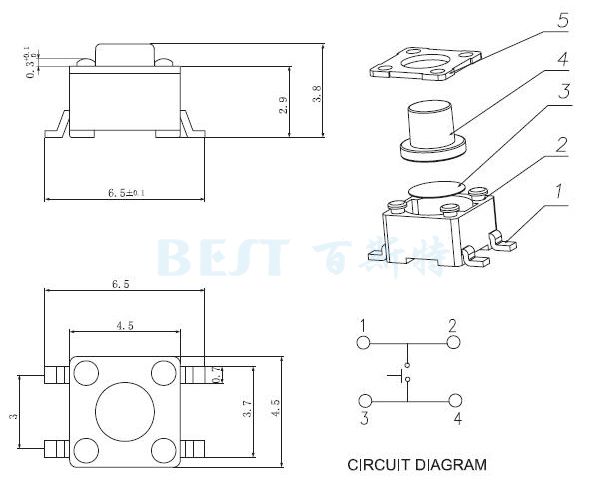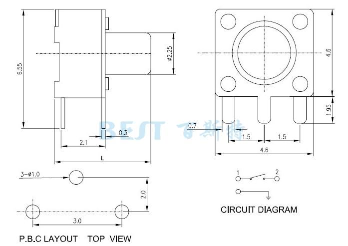 TS-1102為一種直插式輕觸開關(guān),目前一般在市面上又廣泛被稱作為“三腳按鍵開關(guān)”其開關(guān)規(guī)格尺寸為4.5x4.5,高度尺寸區(qū)分有:3.8mm/4.8mm/5.0mm/7.0mm等多種規(guī)格選擇,可依據(jù)用戶的要求定做。注意:此款輕觸開關(guān)TS-1102由于不耐高溫,一般只適合手工焊接和波峰焊兩種焊接方式。